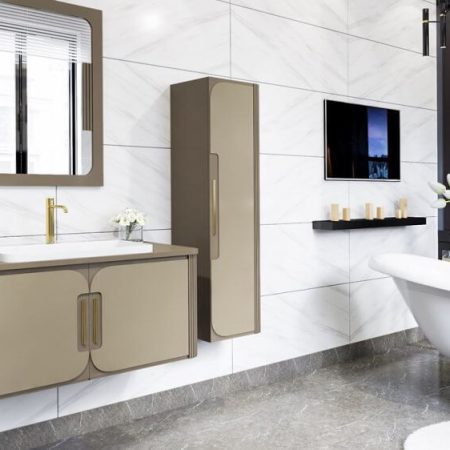 خزانة الحمام 038 ذهب ابيض 100 سم-TG