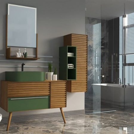 خزانة الحمام047 بلوط أخضر 100 سم-TG