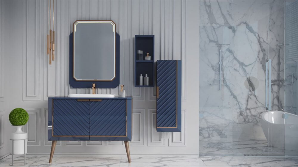 TG-BanyoDolap 049 Lacivert Beyaz Lavabolu